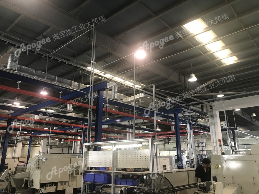 昆山機(jī)床車間屋頂復(fù)雜行車工業(yè)大風(fēng)扇案例